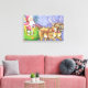 Vintageillustration söt glad jul helgdesign med en glad, jolly Tomte med en säck full av leksaker som kör sin släde som dras av två bedårande renar med bjällror på. Ho, ho, ho Gott nytt år!