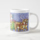 Gammalillustration söt glad jul helgdesign med en glad, jolly tomte med en säck full av leksaker som kör sin släde som dras av två söta renar med bjällror på. Ho, ho, ho God jul!