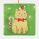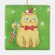 Söt tecknad julkatt med tomteluva julgransprydnad keramik