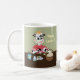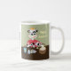 En rolig påskmugg med en tecknad ko som målar påskägg. Personifiera den med ett namn.