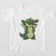 En söt tecknad krokodil med en stor leende och lekfull personlighet. Denna roliga reptilillustration visar en vänlig alligatorfigur omgiven av tropiska blad, vilket ger den en livlig djungelstämning.