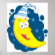 Söt tecknad månebanan i nattmössa poster