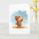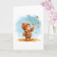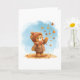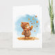 En bedårande teddybjörn leker med höstlöv i denna söta design perfekt för Thanksgiving, en babys första Halloween eller bara ett fint höst "tänker på dig"-kort.