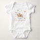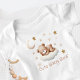 En söt barn bodysuit med en sovande björn på ett moln, omgiven av drömmiga stjärnor och en halvmåne i mjuka, neutrala nyanser av kräm och mjuka bruna toner, denna könsneutrala bodysuit är perfekt för både pojkar och flickor. Dess tidlösa och charmiga design gör den till en måste-ha för ditt barns garderob eller önskelista.