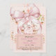 Välkommen vid tillkomsten av en underbar babyflicka med vår Vattenfärg Barnkammar Baby Shower Inbjudan. Denna exklusiva design har en handmålad illustration av en söt vit teddybjörn och hennes djurvänner inklämda i en charmig blomsterkorg. Designen kröns av en magnifik, överdimensionerad rosa vattenfärgsband som ger en touch av högklassig butikselegans till tillkännagivandet.