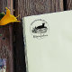 Denna "från bibliotek tillhörande" gummistämpel har en bok, blommor en katt och ett anpassat namn.