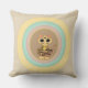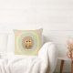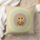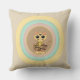 Mode kastkudde med en söt tigerkatt som framträder ur flerfärgade pastellcirklar på beige bakgrund.