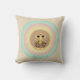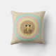 Mode kastkudde med en söt tigerkatt och flerfärgade pastellcirklar på beige bakgrund.