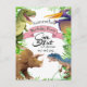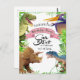 Dinosaurie födelsedagsinbjudningar med en enkel vit bakgrund, grön djungelvegetation, en samling dinosaurier, och en modern personlig födelsedagsmall som är lätt att anpassa.
