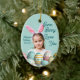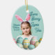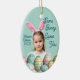 Söt tjej foto Kaninöron Blå Julgransprydnad Keramik