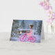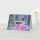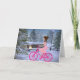 Söt Tjej På En Rosa Cykel Vinter Kort