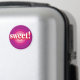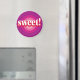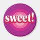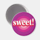 En rosa och lila tjuröga med ordet ”Söt” i mitten är designen på denna magnet.