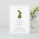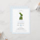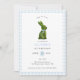 Söt och proper Handmålad akvarell topiary kanin kanin Barn födelsedagsinbjudan med himmelblå och vit gingham kant.