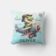 Söt Trex-dinosaur flyger ett charmigt flygplan Kudde