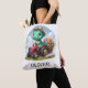 Denna personliga söta och fantasifulla totebag-design har en charmig liten dinosaurie som glatt kör en miniatyr röd traktor med blommor. Med sitt lekfulla uttryck och mjuka drömlika färger lägger denna förtjusande skapelse en touch av förtrollning till alla miljöer, tilltalar alla, särskilt barn och bebisar.