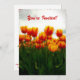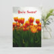 En mjuk, livfull inbjudan från färg som kan anpassas till kostym vid särskilda tillfällen. Underbar för allt som rör tulpaner eller blommor, feminina sammankomster som möhippor eller damer, födelsedagsfester eller luncher. På framsidan finns ett originalfoto från färg av färgad av ljusa gulter i fält med fullt i orange, med torra, rödaktiga petalaccenter och frisk grönt i odlarens fält. Den omvända sidan har flera fält som är lätta att personlig, i matchande röda nyanser och grönt med svart.
