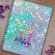 Gör skolstarten rolig med denna söta personliga anteckningsbok. Den är designad med eleganta, flickiga iriserande glitterdroppar i enhörningsregnbågens rosa.