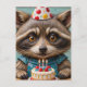 En söt tvättbjörn med festhatt och födelselsekaka fantasiflik konst