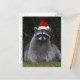 Söt tvättbjörn som bär röd jultomtehatt helg vykort
