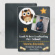 Titta vem som har examen! Söt och enkel uggla och diplom fotomall svart tavla förskola, förskoleklass, grundskola eller grundskola examen ceremoni meddelande. Anpassa enkelt med ditt barns examensinformation. Redigerbar examensannonseringsmall med examensklass och datum.