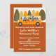 Fira din bussförares sista stopp och ge dem en bra start på pensionen! Denna söta och fantasifulla design har en gul skolbuss med ugglor. Gröna och blå träd kantar bakgrunden. Inbjudan har ett tema för höst och har färgerna orange, gul och grön. Anpassa denna inbjudan för din bussförares pensionsfest. Det finns också gott om utrymme på baksidan för ytterligare information, foton och en kort beskrivning av deras många år av hängiven tjänst. Denna inbjudan passar också bra för en lärares pension eller ett barns födelsedag med buss-tema.