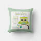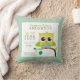Modern och söt babyrums kastkudde med en söt grönblå uggla som sitter på en gren med födelseinformation: förnamn, mellannamn och efternamn, vikt, tid, datum och längd. Lätt att redigera och lägga till din text. Gör en fin present till nyfödd eller babyfest!