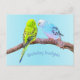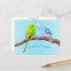 Detta vykort har en digital målning av ett sött undulatpar på en gren. Vackert vykort för alla fågelälskare! Designad av Marions Artwork.