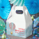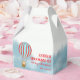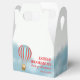 Favoritasken för baby shower har en söt unge i en varmluftsballong som flyger över molnen.