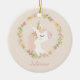 Söt Unicorn Rosa Unik Blommigt Script Julgransprydnad Keramik