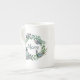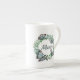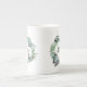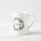 Elegant, vit benvävnad china kopp, med grafik av utandning från söt växt löv, med 3D-tittar fjärilar och grönt som läser Mamma. Fantastisk presentidé för mamma på Mors dag. Matchande tekruka tillgänglig.