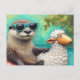 En söt utter slappnar av i en uppblåsbar fårflotte på en flodutflykt AI-genererad konst