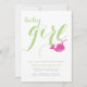 Söt fuchsia rosa val hav grön typografi baby girl shower. Den har texten "Baby girl" och en liten rosa val med hjärtan. Baksidan har ett valmönster.