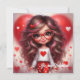 Söt valentinbusig tjej med rött hjärta kärlek julkort