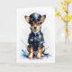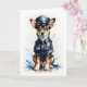 Bedårande liten hund redo att skydda och tjäna på detta tomma vykort.