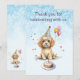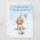 Söt valp med födelsedagsfesthatt tack kort