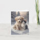 Blank julkort med en bedårande valp och kattunge som poserar i snön.