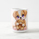 Söt valp som håller teddybjörn-mugg kaffemugg