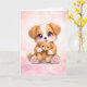 Söt valp som kramar nallebjörn gratulationskort kort