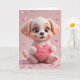 Söta Alla hjärtans dag med en bedårande valp som håller ett hjärta. Perfekt för hundälskare och söta romantiska meddelanden.