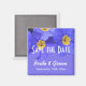 Blå trädgårdsblommor från söt vår sparar datumet bröllop magnet.