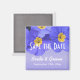 Blå trädgårdsblommor från söt vår sparar datumet bröllop magnet.