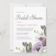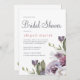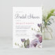 Söt vattenfärgen lila vår blommigt inbjudningskort för möhippan har en vacker bukett av pastel lila blommor på inbjudningens fram- och bakhörn.