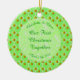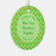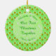 Detta prydnadsämne är designat för ett nytt par som tillbringar sin första jul tillsammans som man och hustru. Utformningen har en mönster av blommor av söt blek rosa äpple-blommar. De är två olika rosor och alla har en gult mitten. De är idealiska för Vår bröllop och blandade mellan äpplen. Varje äpple är grönt med en röd på ena sidan och en liten brun stjälk. Det finns en grönt med vit marmorerad blek på den som innehåller anpassade så att du kan inkludera alla viktiga mönster.
