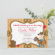 Börja din stiliga pojkbabyshower på rätt sätt med vår söta lilla cowboy-babyshowerinbjudan. Vår västerninspirerade babyshowerinbjudan visar en söt liten cowboy som bär cowboyhatt, cowboystövlar och en blå paisleyblöja som rider på en bedårande gunghäst på en brun randig bakgrund med en repmotiv. Baksidan av vår söta texas-cowboy-pojk-babyshowerinbjudan har en koordinerande randig bakgrund. Besök vår butik för att se vårt urval av västerninspirerade cowboyinbjudningar.