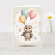 Söt vattenfärg ugglas gul blå röda ballonger Blank Kort