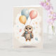 Bedårande vattenfärg ugglor med färgglada ballonger som flyter genom luften omgivna av moln. Tom välkomstkort för födelsedag, årsdag, ny bebis, tack etc.