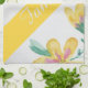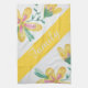 Gult tehandduk med vattenfärg - färg: gult, rosa, lätt grått. Anpassa för en speciell gåva.
