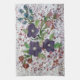 Teadhandduk med en blommigt med söt vattenfärg och djup lila, gröntar och en aning blått