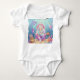 Dyk in i gottis med denna söta babybodysuit i jersey med en vacker akvarell-sjöjungfrudesign. Designen visar sjöjungfrun sittande på ett korallrev, omgiven av delfiner, maneter och andra fantasifulla undervattensvarelser. Denna mjuka och bekväma bodysuit är en perfekt personlig outfit för en babyflicka, ett födelsedagstema eller en oförglömlig present till föräldrar som älskar havet och fantasiteman.