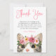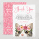Söt födelsedags tack-kort med "Tack" utformat i en fantasifull rosa skrivstil med en målad vattenfärgskatt som bär en krona av rosa och mauve blommor nedanför. Personifiera födelsedagsgratulationen med din anpassade hälsning och namn. Designen koordinerar med vår Sweet Watercolor Kitty-kollektion.